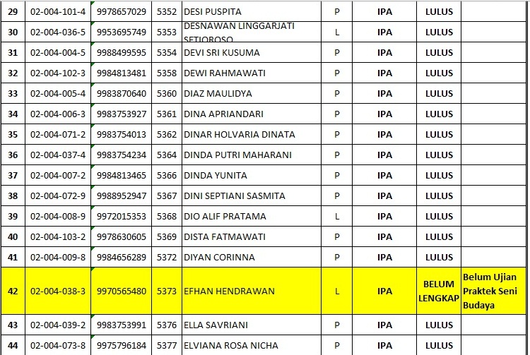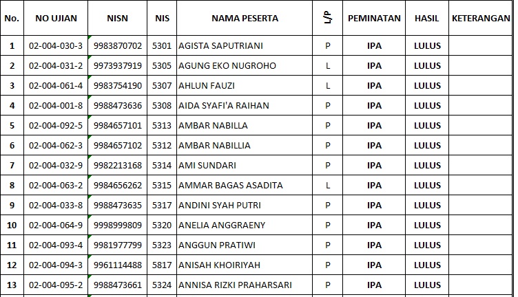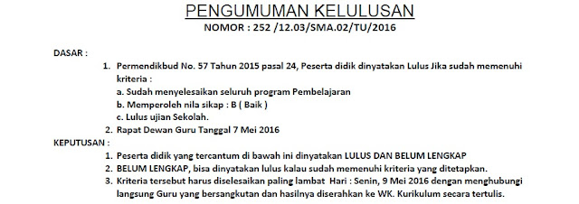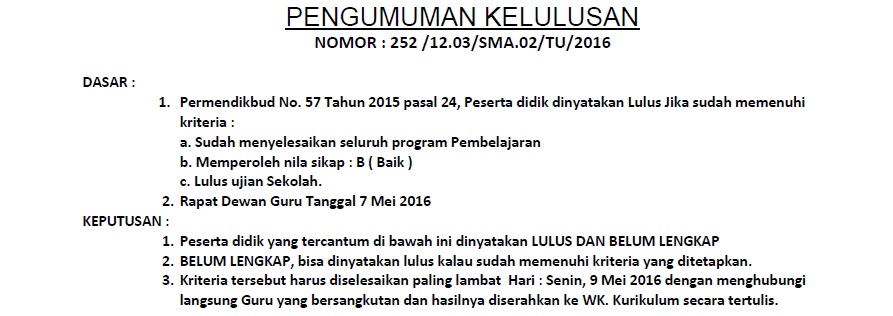 PENGUMUMAN KELULUSAN SISWA/SISWI KELAS XII