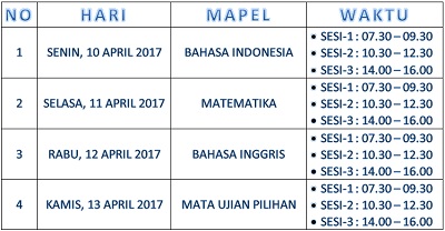 Tingkat SMA akan dilaksanakan serentak di seluruh Indonesia pada Tgl 10 - 13 April 2017