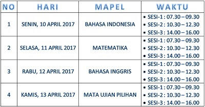 Tingkat SMA akan dilaksanakan serentak di seluruh Indonesia pada Tgl 10 - 13 April 2017