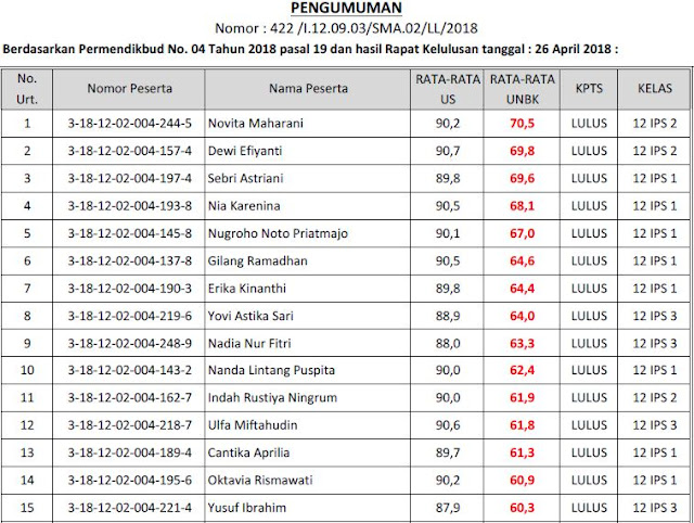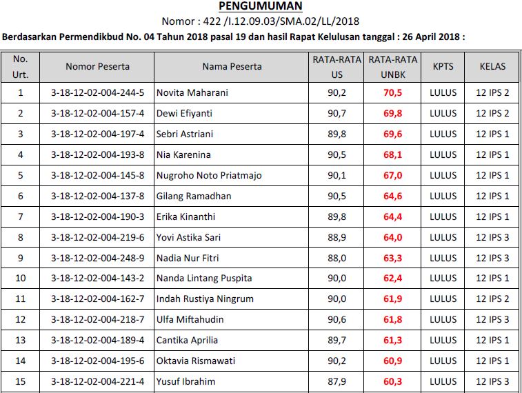PENGUMUMAN KELULUSAN T.P. 2017-2018